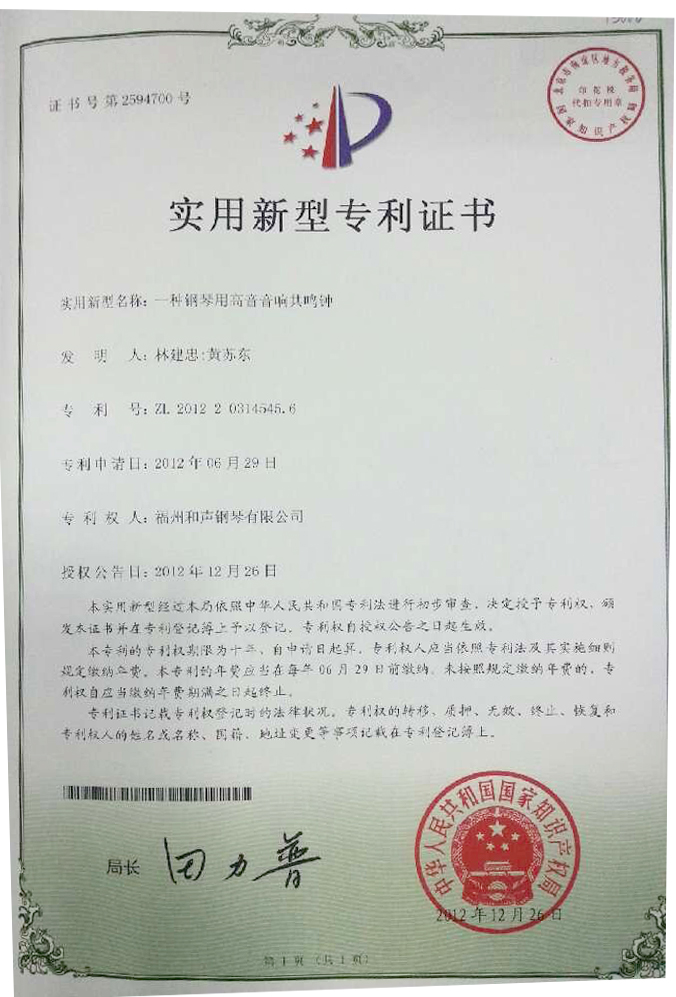 高音音響共鳴鐘(實用新型專利,專利號:ZL 2012 2 0314545.6) 2018-06-28 10:03:02
